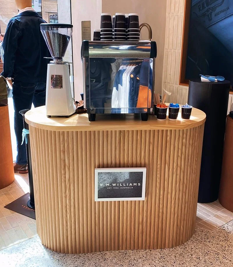 The wood cart provides a beautiful presence to serve coffee from.